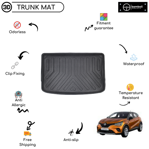 Vehicle Specific Rubber Trunk Mat Cargo Liner for Renault Captur Upper 2021 - Up