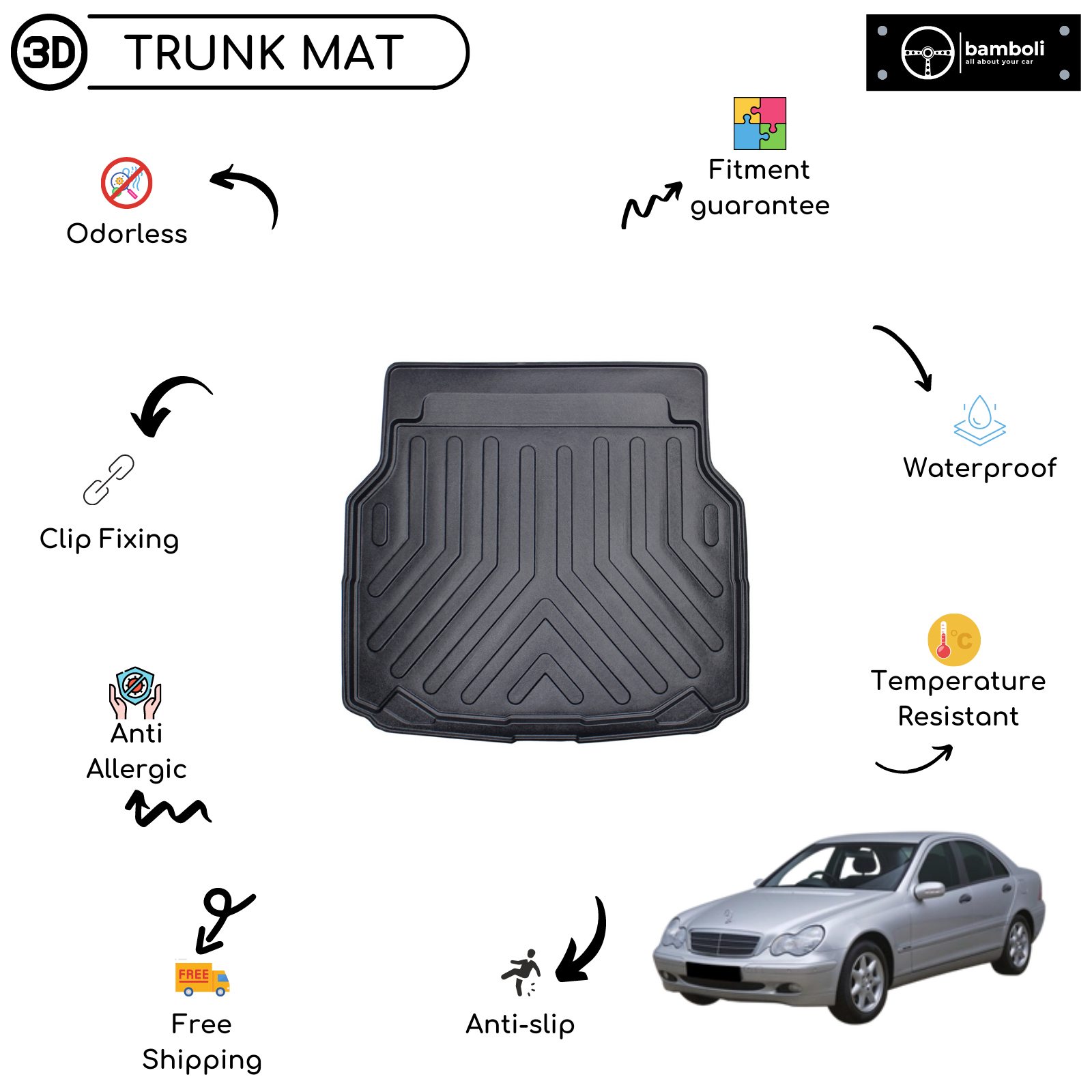 Vehicle Specific Rubber Trunk Mat for Mercedes C Class W203 2001 - 2007